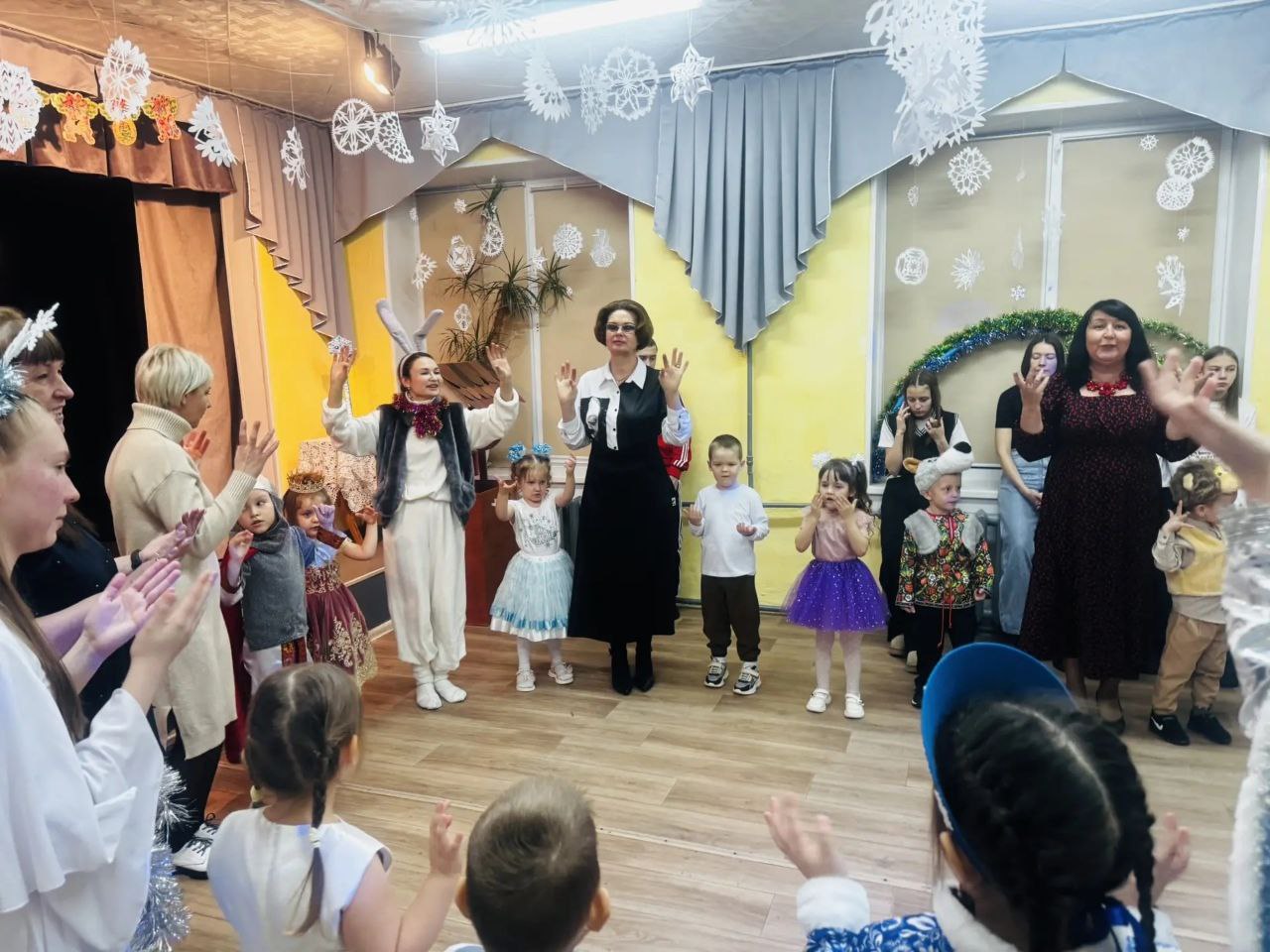 Ребята водили хороводы, собирали снежки, танцевали и рассказывали стихотворения Деду Морозу. Праздничное настроение для юных гостей создавали костюмированные герои: Снегурочка — Мерк Алисия; Дед Мороз — Оконешников Андрей Александрович; Снежинка — Ярина Анастасия; Машинист — Клименкова Алёна Леонидовна; Паровозик — Дубровина Ирина Ивановна; Зайчик — Бобылева Оксана Александровна; Лисичка — Сажина Наталья Викторовна; Баба Яга — Маткина Валентина Павловна.